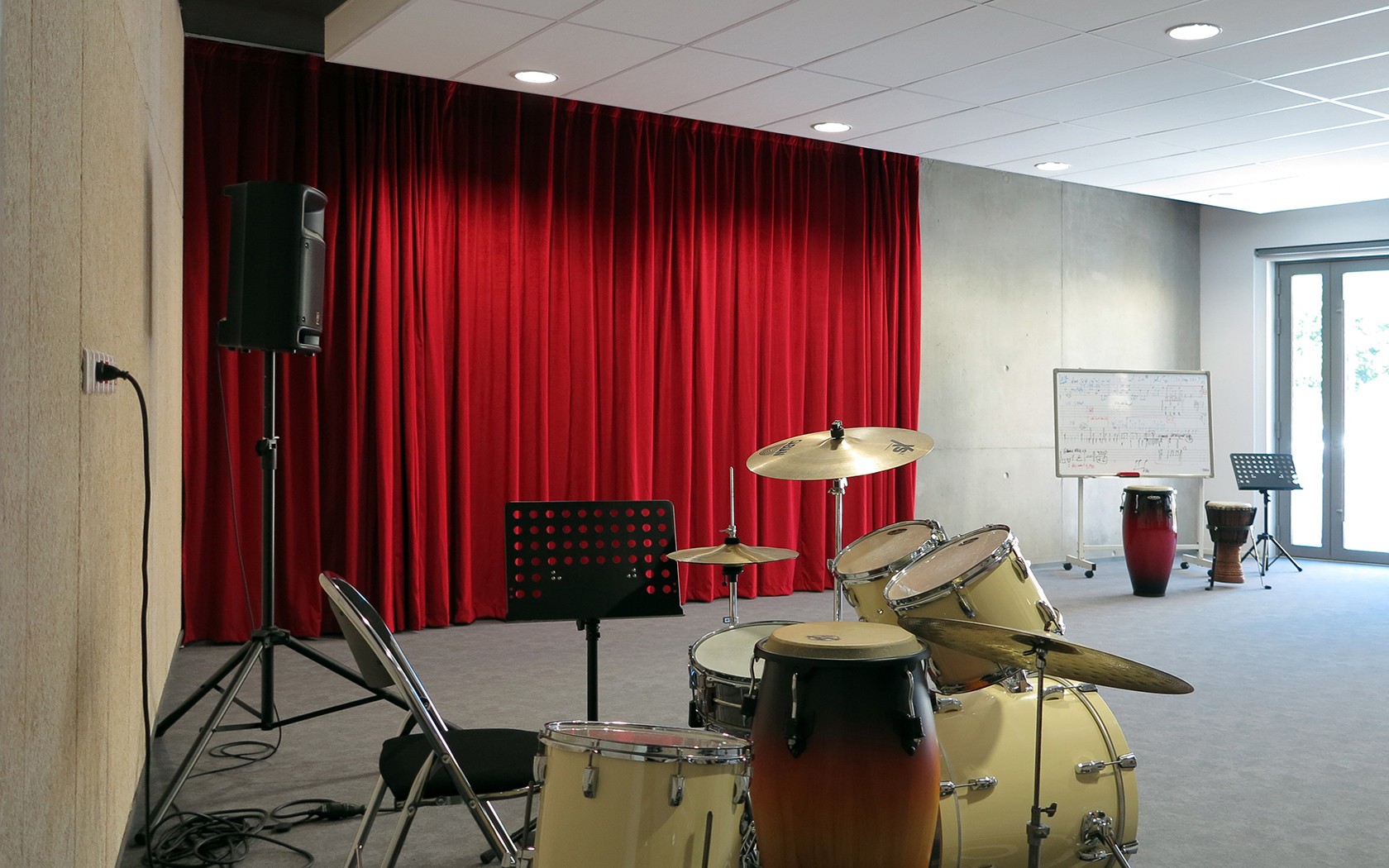 Le bâtiment est en béton isolé par l’extérieur sans aucun pont thermique. Sa structure béton s’est imposée pour formé un soutènement au terrain, mais aussi afin d’assurer une bonne isolation acoustique vis-à-vis des voisins. Une étude acoustique a par ailleurs permis de travailler sur les qualités sonores internes à l’école: salle de piano, de percussions- batterie et salle de chant.