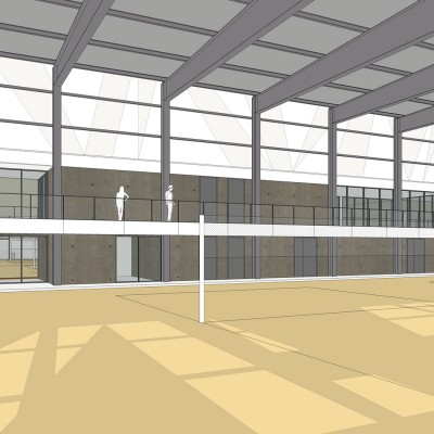 Il s’agit d’un projet de construction d’une salle de beach-volley couvert et de 4 terrains extérieurs à Binic. La surface du terrain de 6600 m2, il présente un dénivelé de 6 m dans le sens nord-sud.